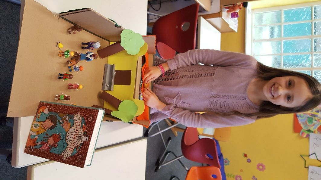 Die Bücherei-AG hat in der letzten Stunde eine Buchvorstellung aus dem Schuhkarton gezeigt. Hierzu wurden die Kinder aus den Klassen 3 und 4 eingeladen. Jedes Kind aus der AG hat sein Lieblingsbuch vorgestellt. Mit viel Freude und großem Basteltalent wurden die Inhalte unterschiedlichster Bücher präsentiert. Als nächstes ist ein Bilderbuchkino für die Kinder aus der Plapperkiste geplant.